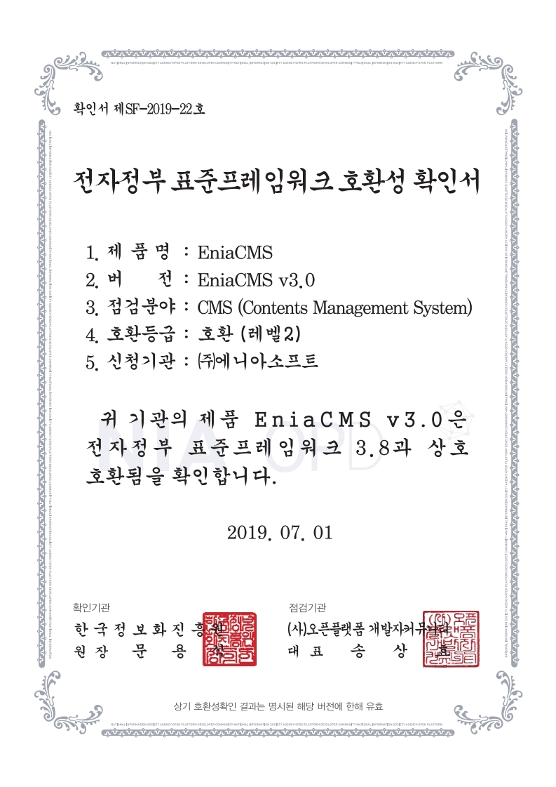 전자정부 표준프레임워크 호환성 확인서